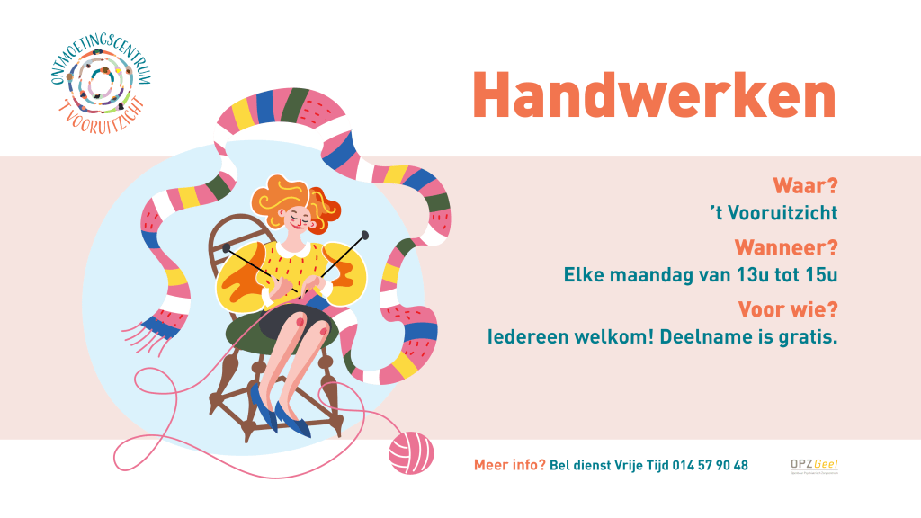 Op verschillende momenten tijdens de week kan je vrij aansluiten bij een aantal activiteiten. Inschrijven is niet verplicht en je mag zeker eens komen proberen. Ziehier een overzicht: